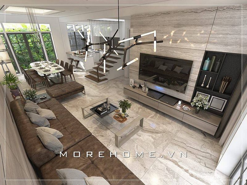Thiết kế nội thất phòng khách liền phòng ăn phong cách hiện đại sang trọng, tiện nghi cho nhà biệt thự